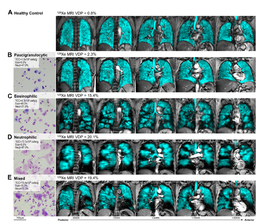 Este estudio tuvo como objetivo determinar cómo los diferentes fenotipos celulares del esputo afectan a la ventilación anormal, específicamente según la evaluación por RMN con 129Xe, en pacientes con asma grave.